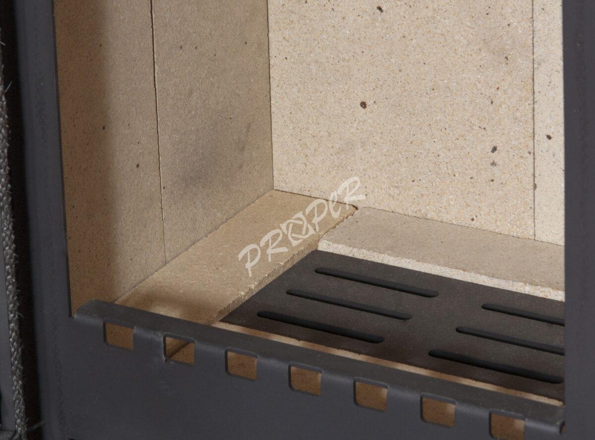 Výmurovka kachlí je zo šamotu. Skladá sa z rovných dosiek, ktoré sú ľahko vymeniteľné. Sú vždy dostupné ako náhradný diel. Praskliny v šamote sú u tohto základného kachliarskeho materiálu jeho charakteristikou a nemajú vplyv na kúrenie a prevádzku kachlí.