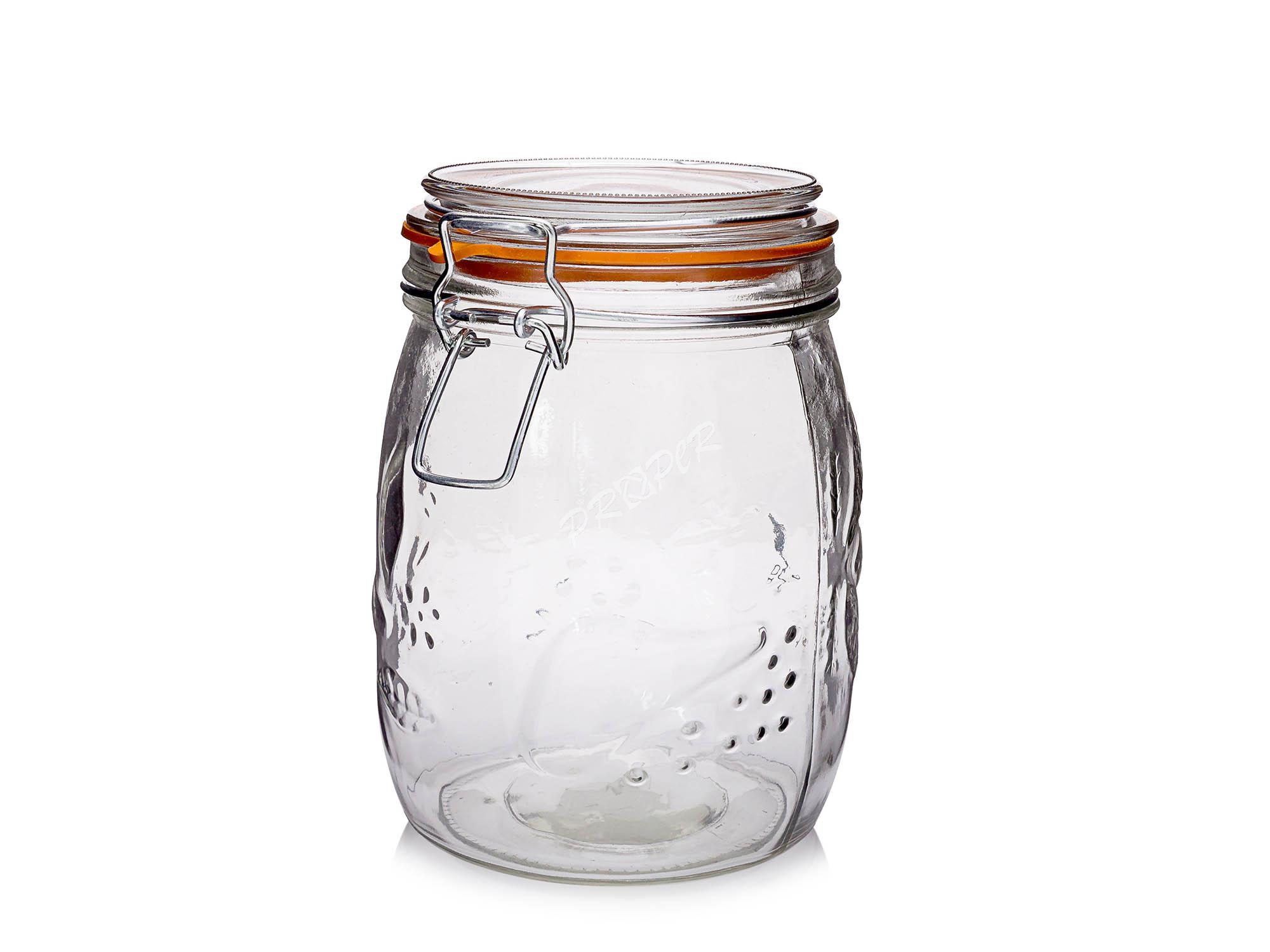 Sklenená hermetická dóza 0,75l s vekom patentovým uzáverom Je možné ju hermeticky uzavrieť s vrchnákom pevne pripevneným ku dóze. Balenie obsahuje aj tesniacu gumičku.